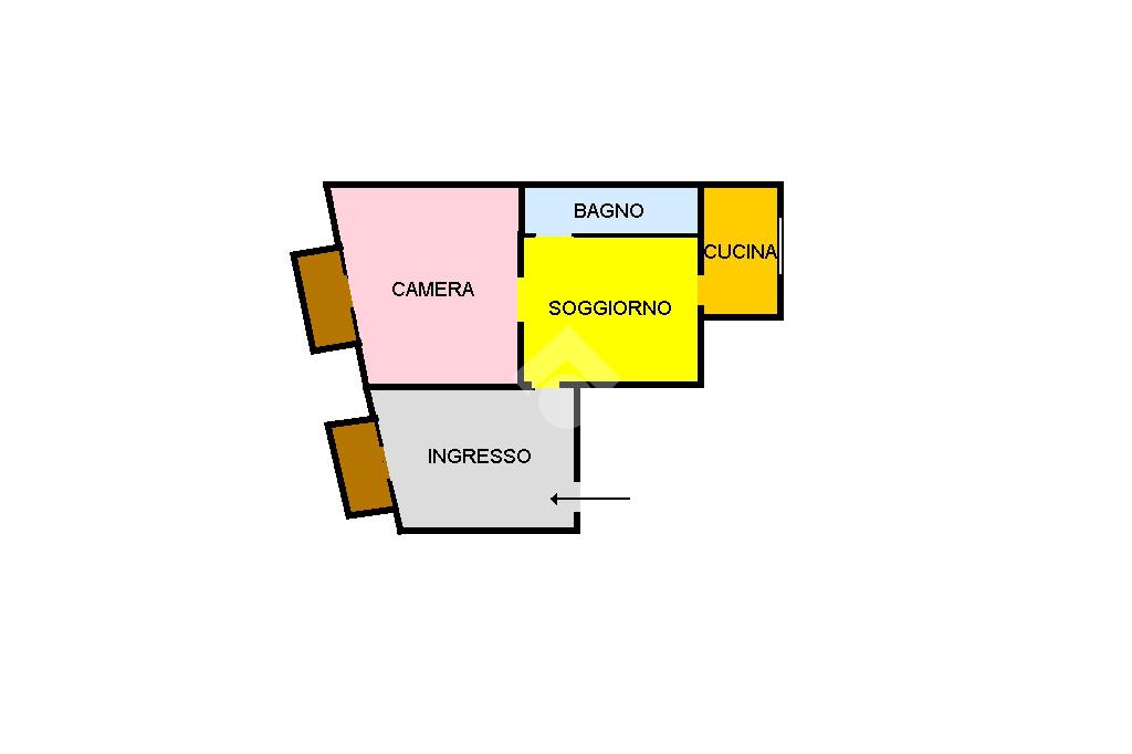 L'appartamento posto al terzo piano presenta un ingresso, soggiorno, adiacente una camera da letto con balcone su prospetto, cucina con finestra e bagno cieco.