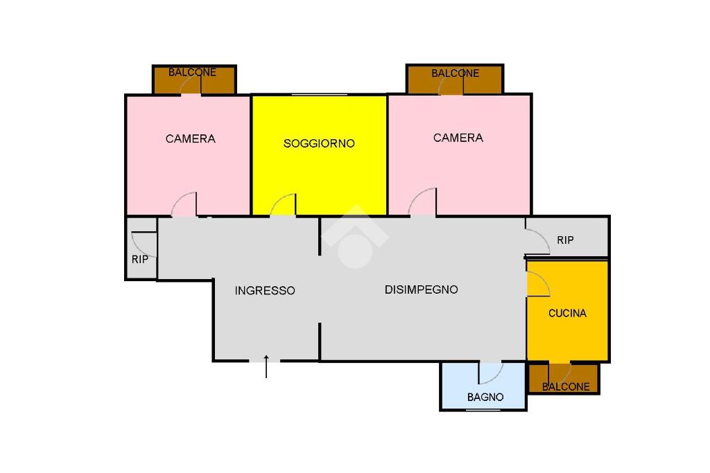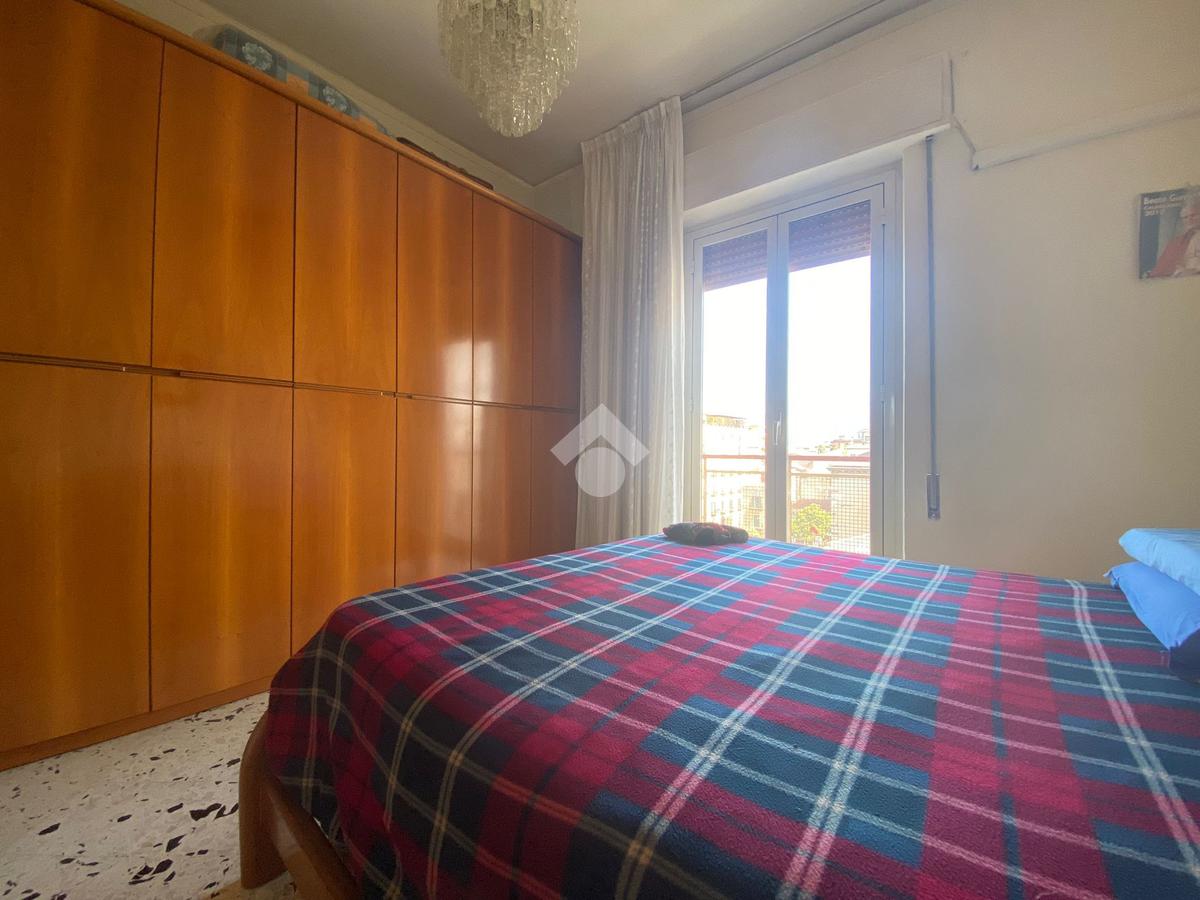 L'appartamento posto al quinto piano presenta un ingresso su disimpegno, due camere da letto con balcone sul prospetto, ed un soggiorno con finestra. Adiacente una cucina con balcone interno, un bagno e due comodi ripostigli.