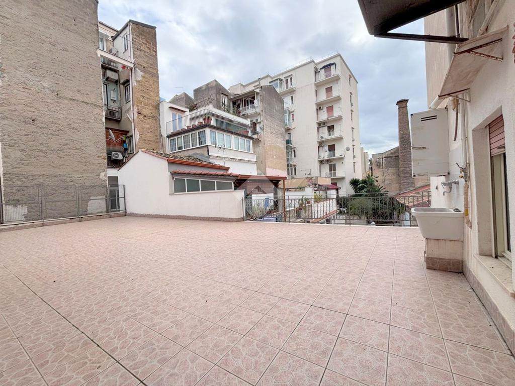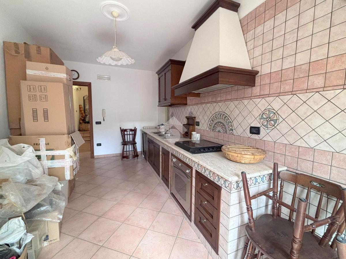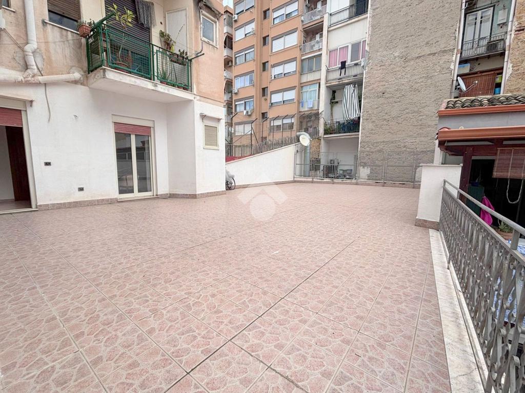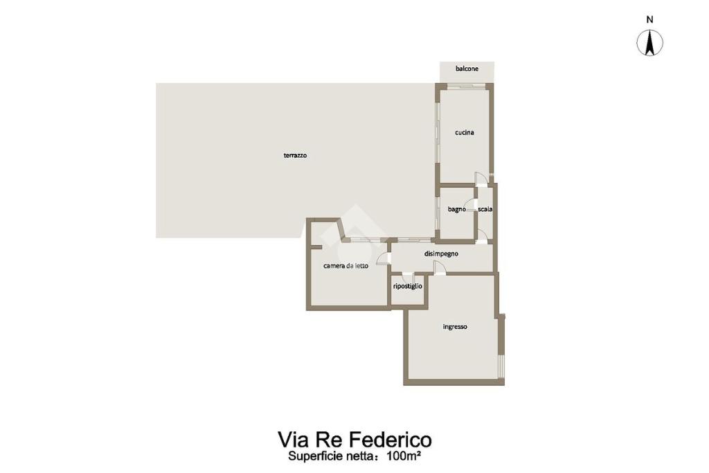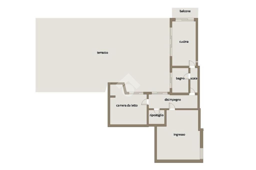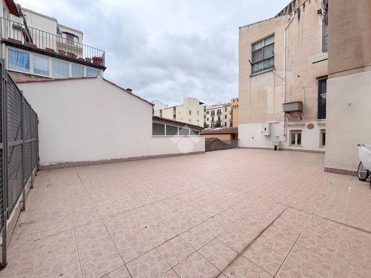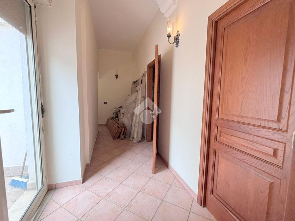 L'appartamento posto al primo piano, presenta un ingresso su soggiorno, adiacente il corridoio conduce ad una cucina abitabile e luminosa fornita di balcone, ed un servizio igienico con piatto doccia. Inoltre presenta una comoda camera da letto con annesso un ripostiglio. L'appartamento espone su di un ampio terrazzo di 100 mq, ideale per chi ha l'hobby del giardinaggio o possiede animali domestici.