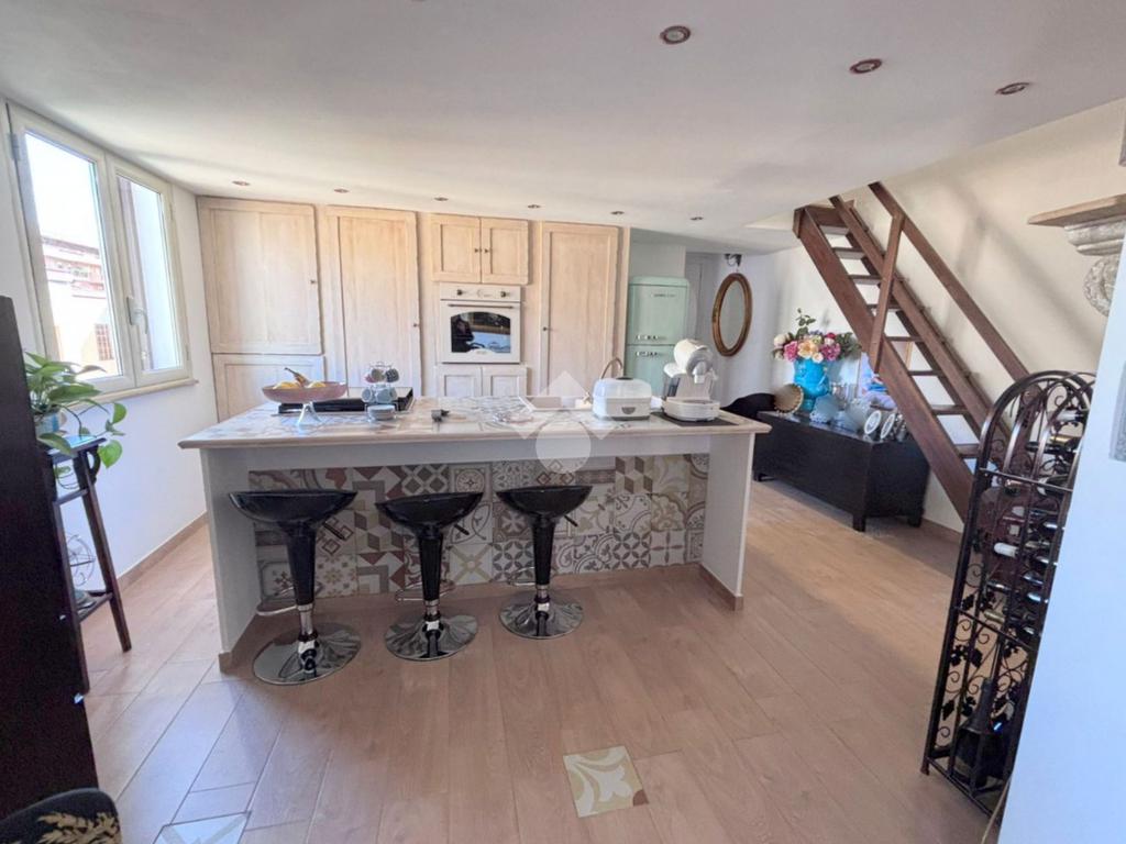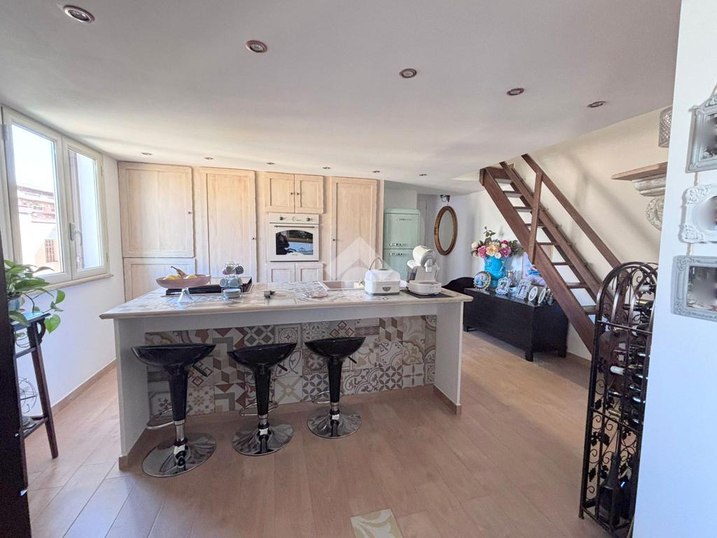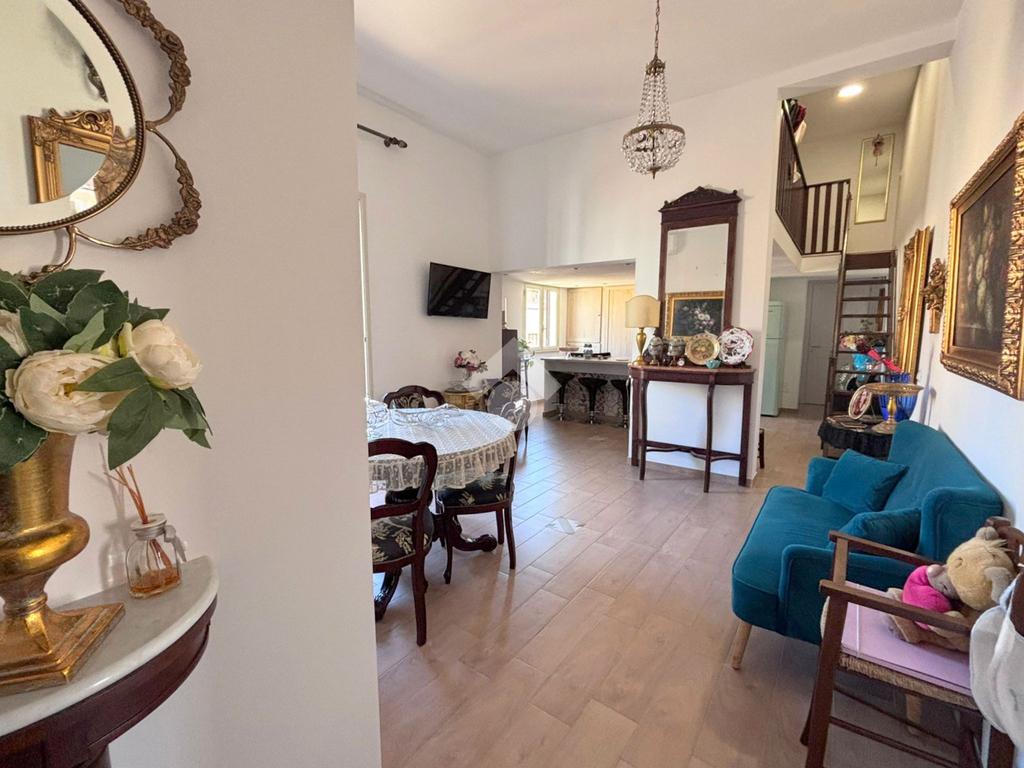 L'appartamento posto al terzo piano, presenta un ingresso su cucina soggiorno dotato di balcone con esposizione su retro-prospetto. adiacente un servizio igienico con vasca e finestra. Inoltre presenta una camera da letto, un comodo rispostiglio. Annesso alla cucina un soppalco con scala in legno ove è presente un'altra camera da letto.