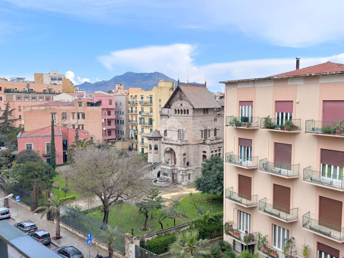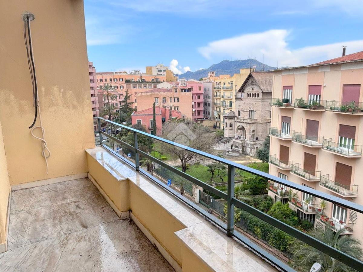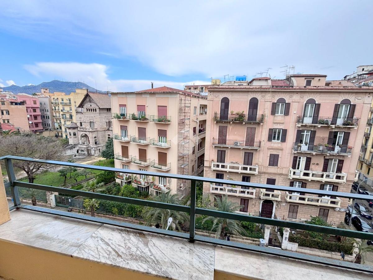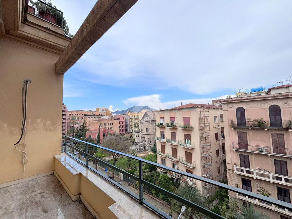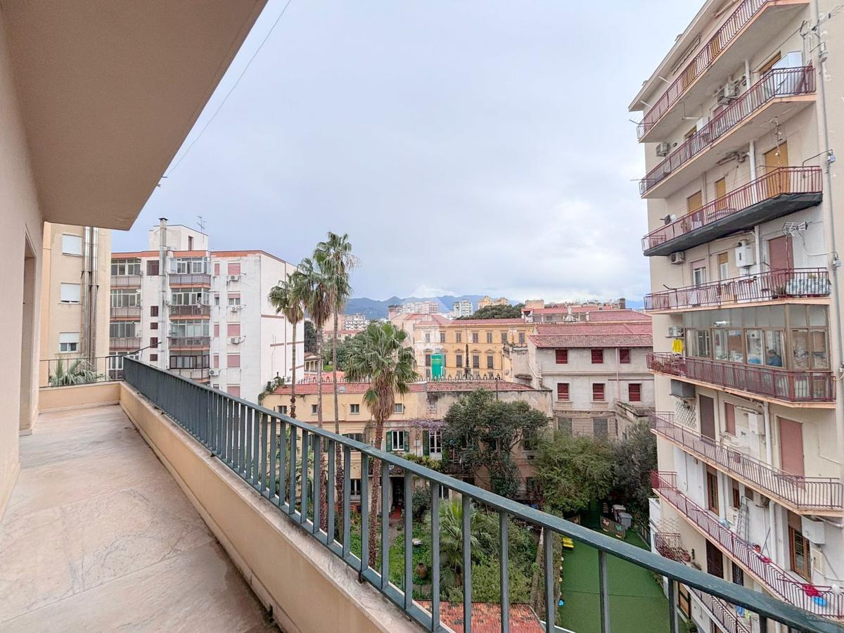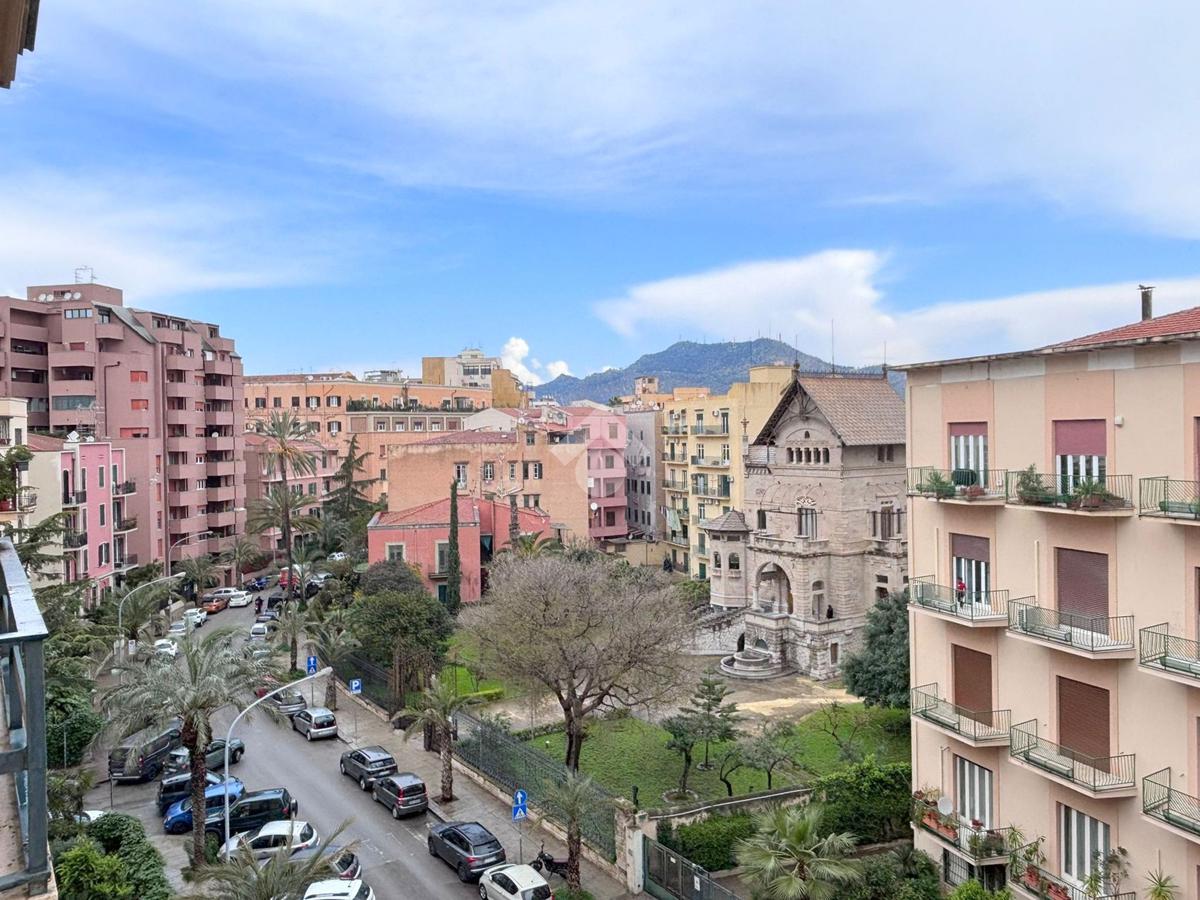 L'appartamento posto al quarto piano ha un cancello in ferro e doppio accesso, sulla destra un comodo studio con balcone a prospetto e vista panoramica sul Villino Florio, adiacente un salone doppio con finestra e porta finestra sul secondo balcone, presenti 4 camere tutte con porta finestra su balconi. Presenti 3 Servizi igienici con ceramica pregiata, un ripostiglio e una cucina abitabile in muratura con esposizione sul quarto balcone.