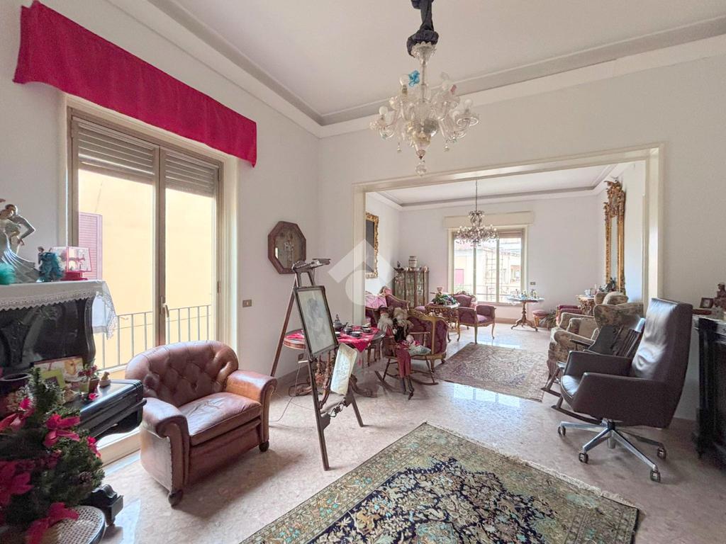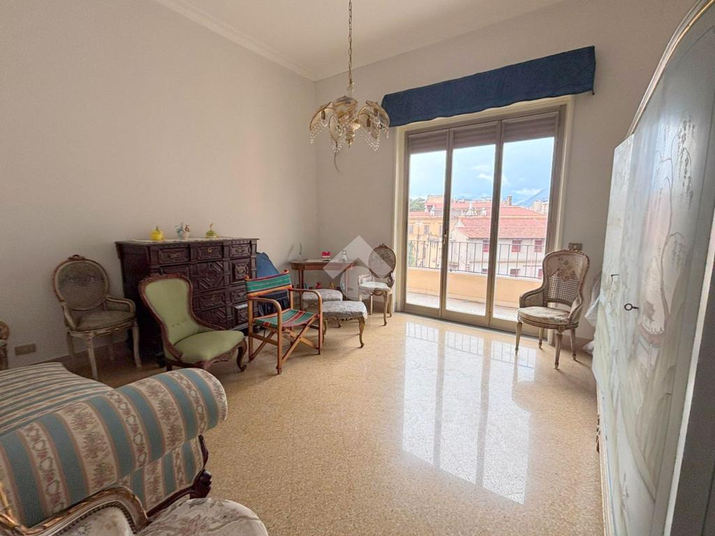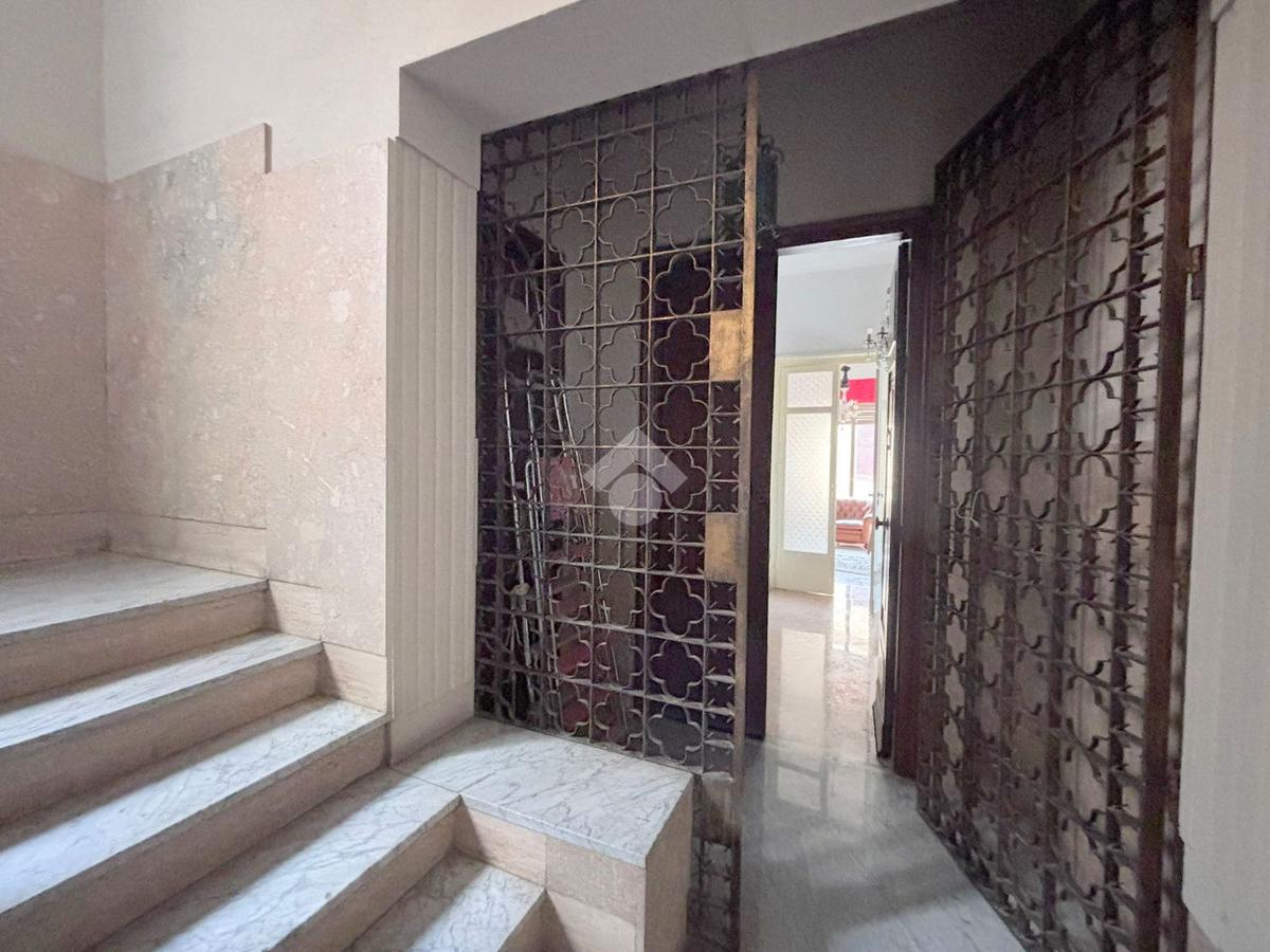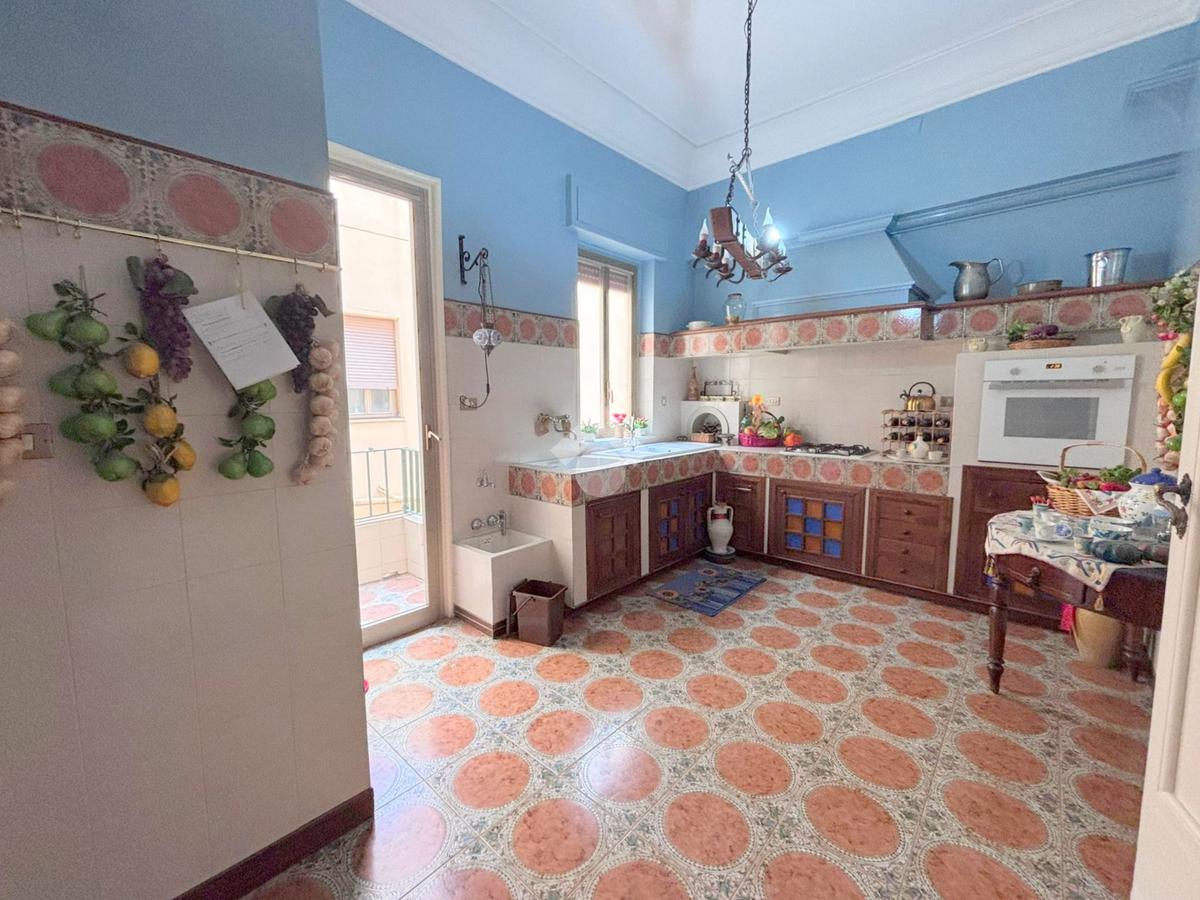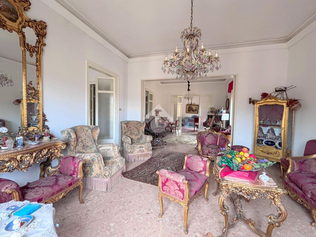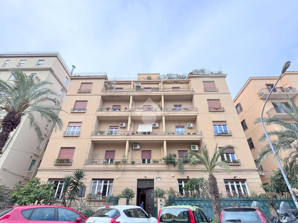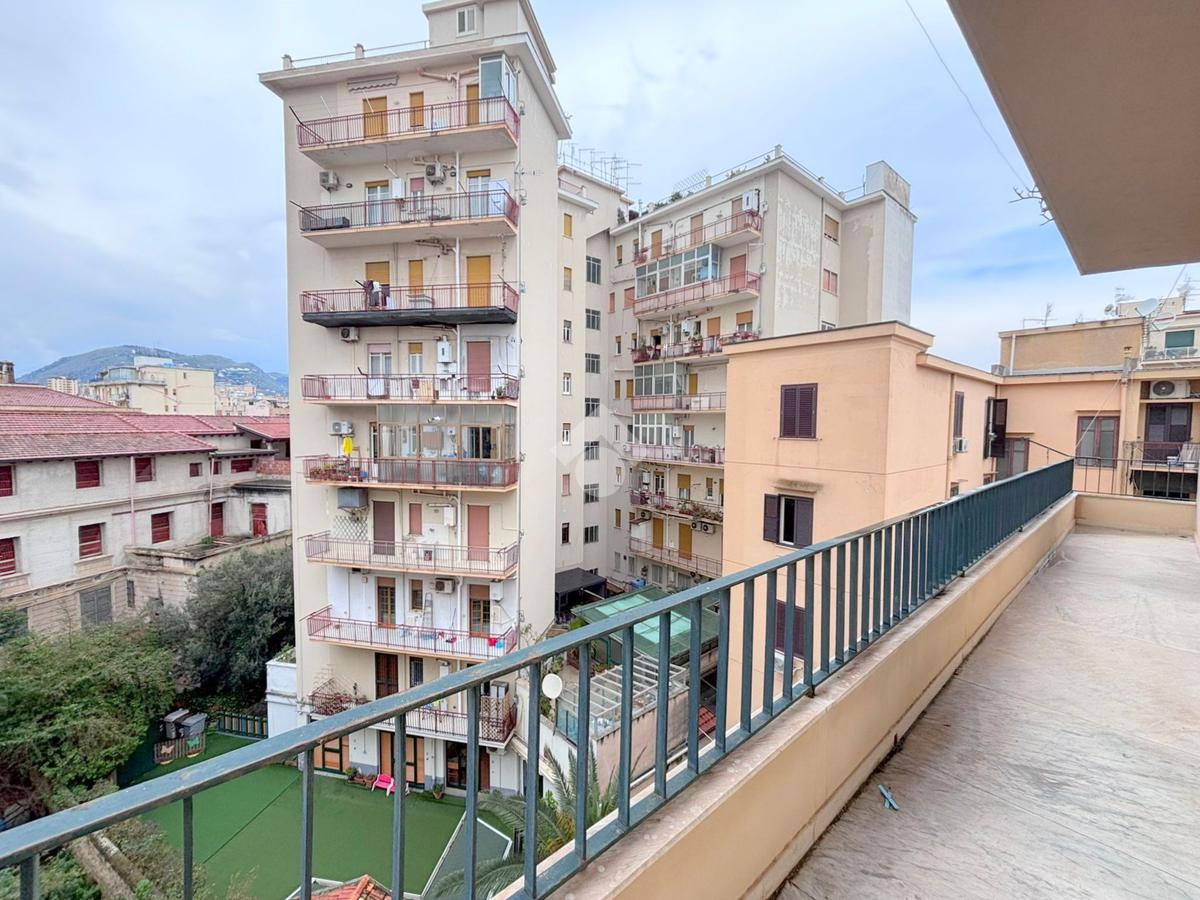 L'appartamento posto al quarto piano ha un cancello in ferro e doppio accesso, sulla destra un comodo studio con balcone a prospetto e vista panoramica sul Villino Florio, adiacente un salone doppio con finestra e porta finestra sul secondo balcone, presenti 4 camere tutte con porta finestra su balconi. Presenti 3 Servizi igienici con ceramica pregiata, un ripostiglio e una cucina abitabile in muratura con esposizione sul quarto balcone.