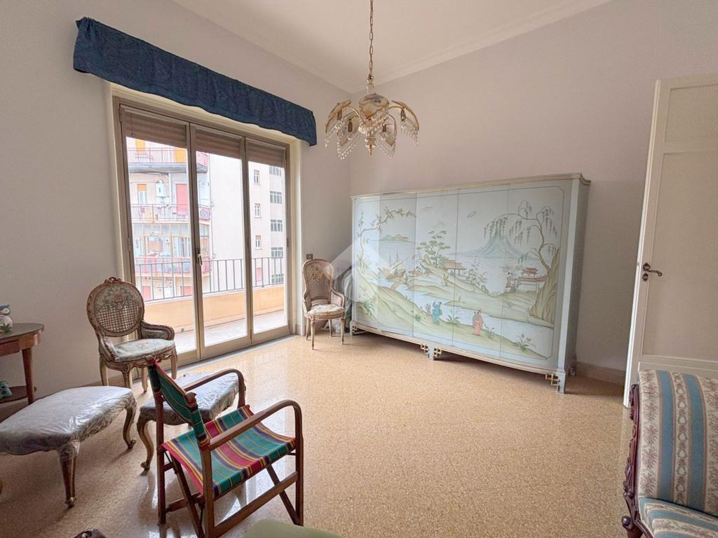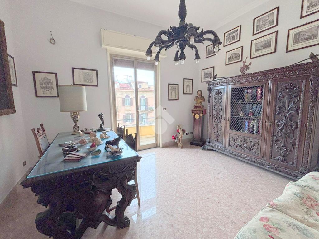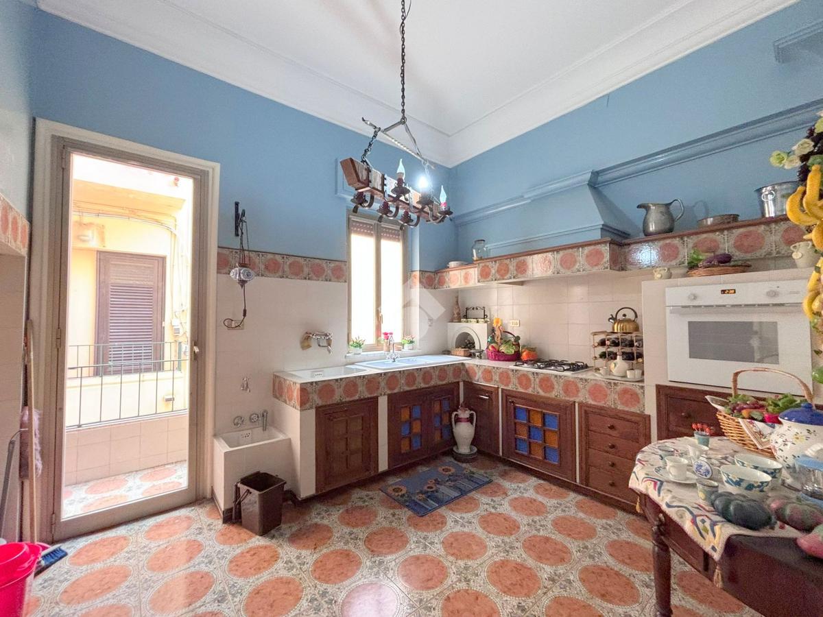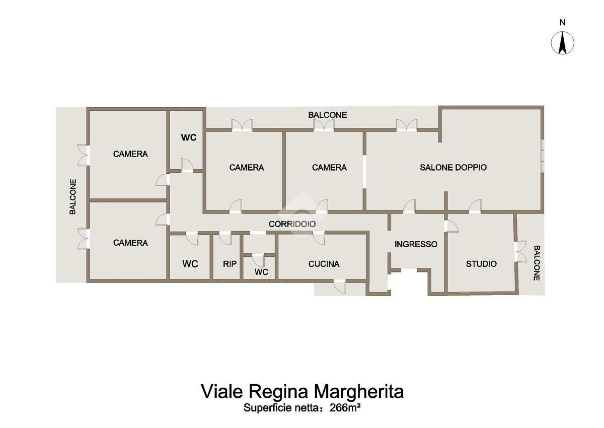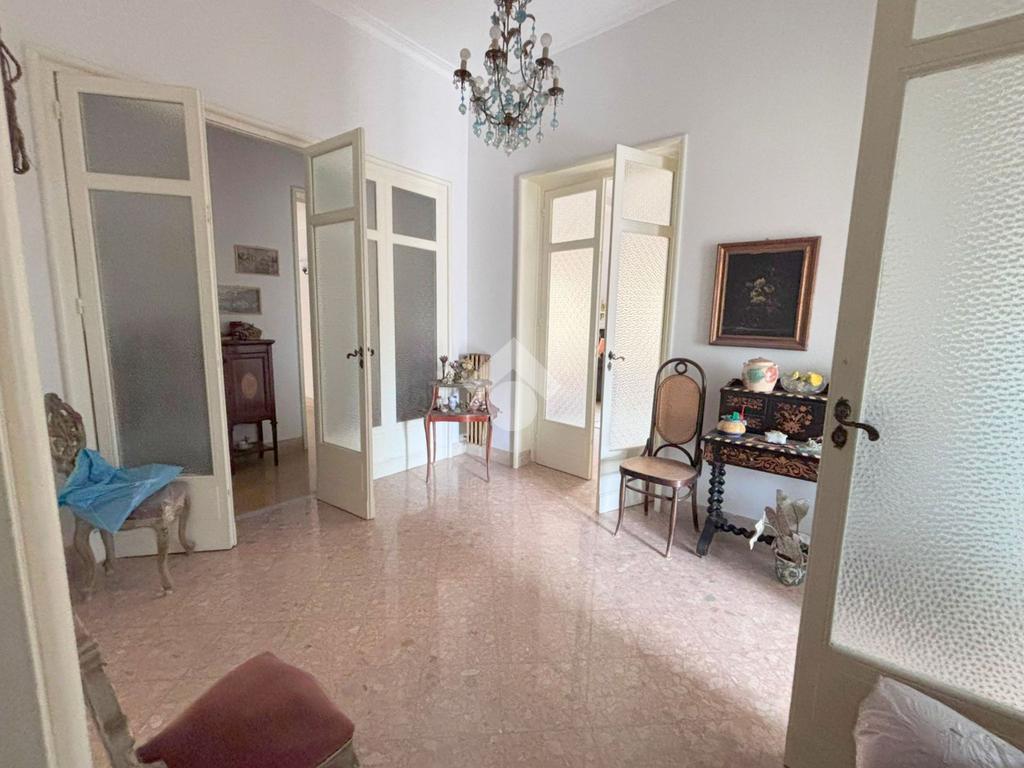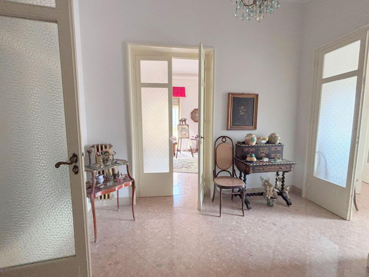 L'appartamento posto al quarto piano ha un cancello in ferro e doppio accesso, sulla destra un comodo studio con balcone a prospetto e vista panoramica sul Villino Florio, adiacente un salone doppio con finestra e porta finestra sul secondo balcone, presenti 4 camere tutte con porta finestra su balconi. Presenti 3 Servizi igienici con ceramica pregiata, un ripostiglio e una cucina abitabile in muratura con esposizione sul quarto balcone.