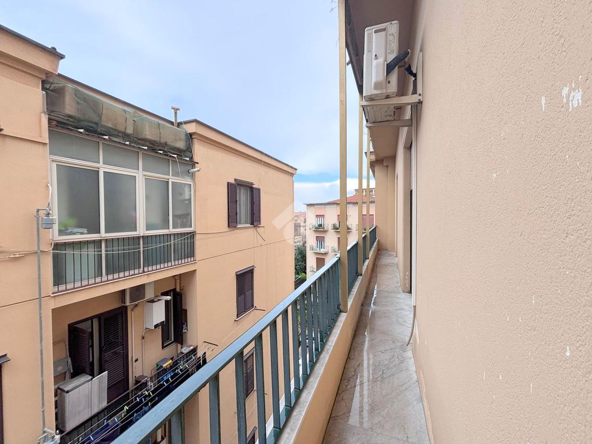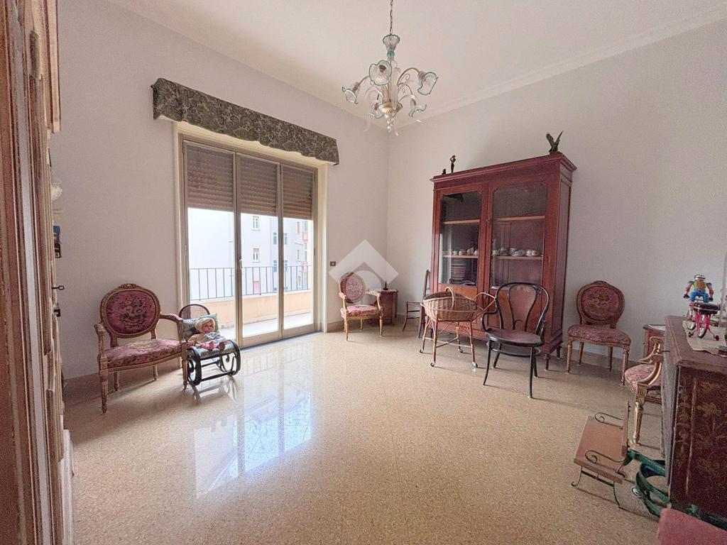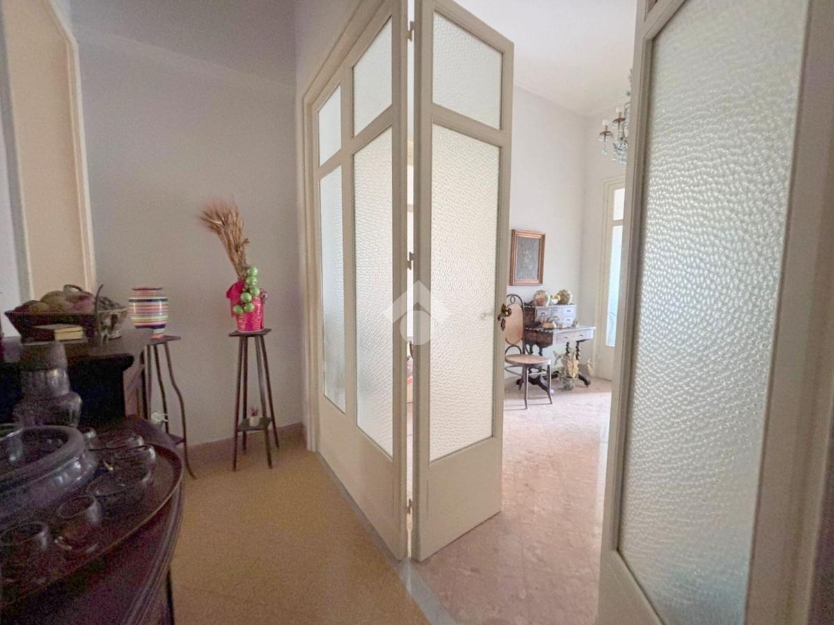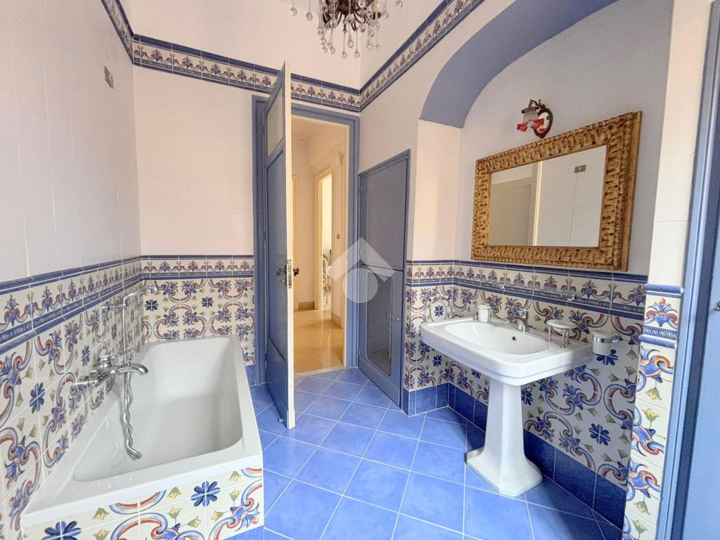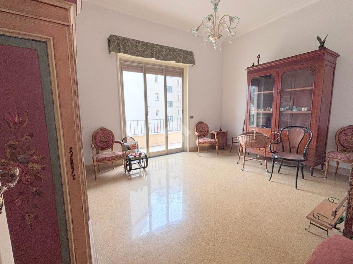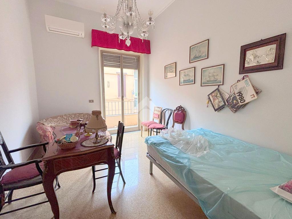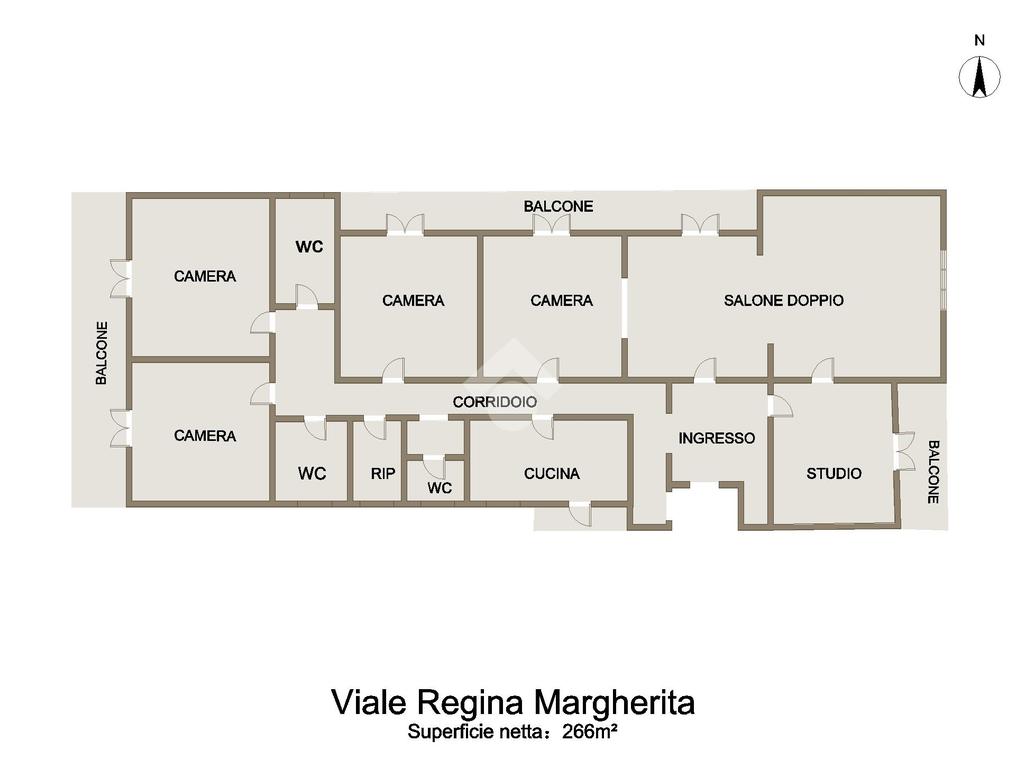 L'appartamento posto al quarto piano ha un cancello in ferro e doppio accesso, sulla destra un comodo studio con balcone a prospetto e vista panoramica sul Villino Florio, adiacente un salone doppio con finestra e porta finestra sul secondo balcone, presenti 4 camere tutte con porta finestra su balconi. Presenti 3 Servizi igienici con ceramica pregiata, un ripostiglio e una cucina abitabile in muratura con esposizione sul quarto balcone.
