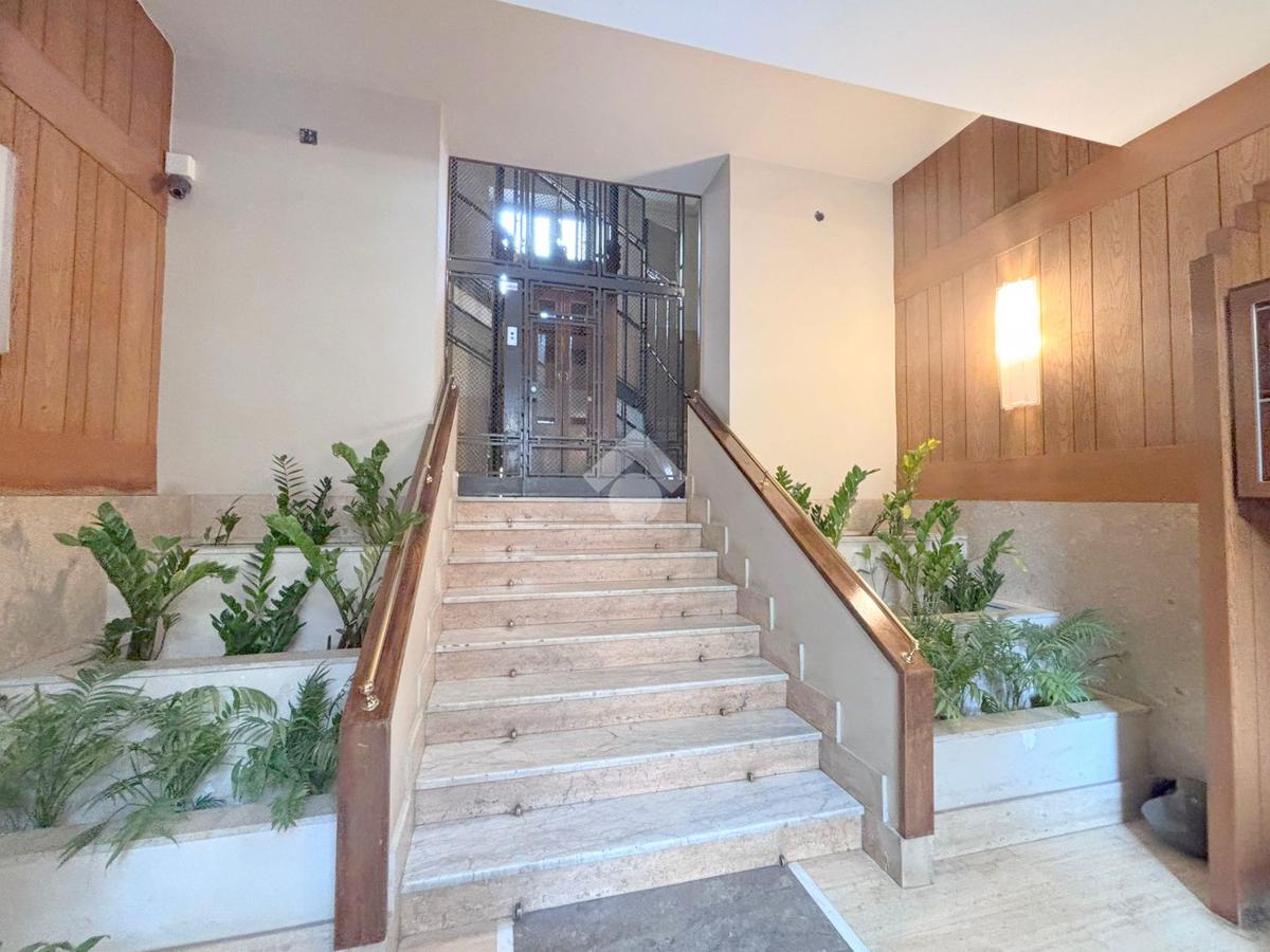 Lo stabile di cinque piani, costruito degli anni '50 con ascensore e servizio di portierato part-time, le spese condominiali ammontano a circa 200 euro al mese. Il prospetto si presenta in buone condizioni di manutenzione.